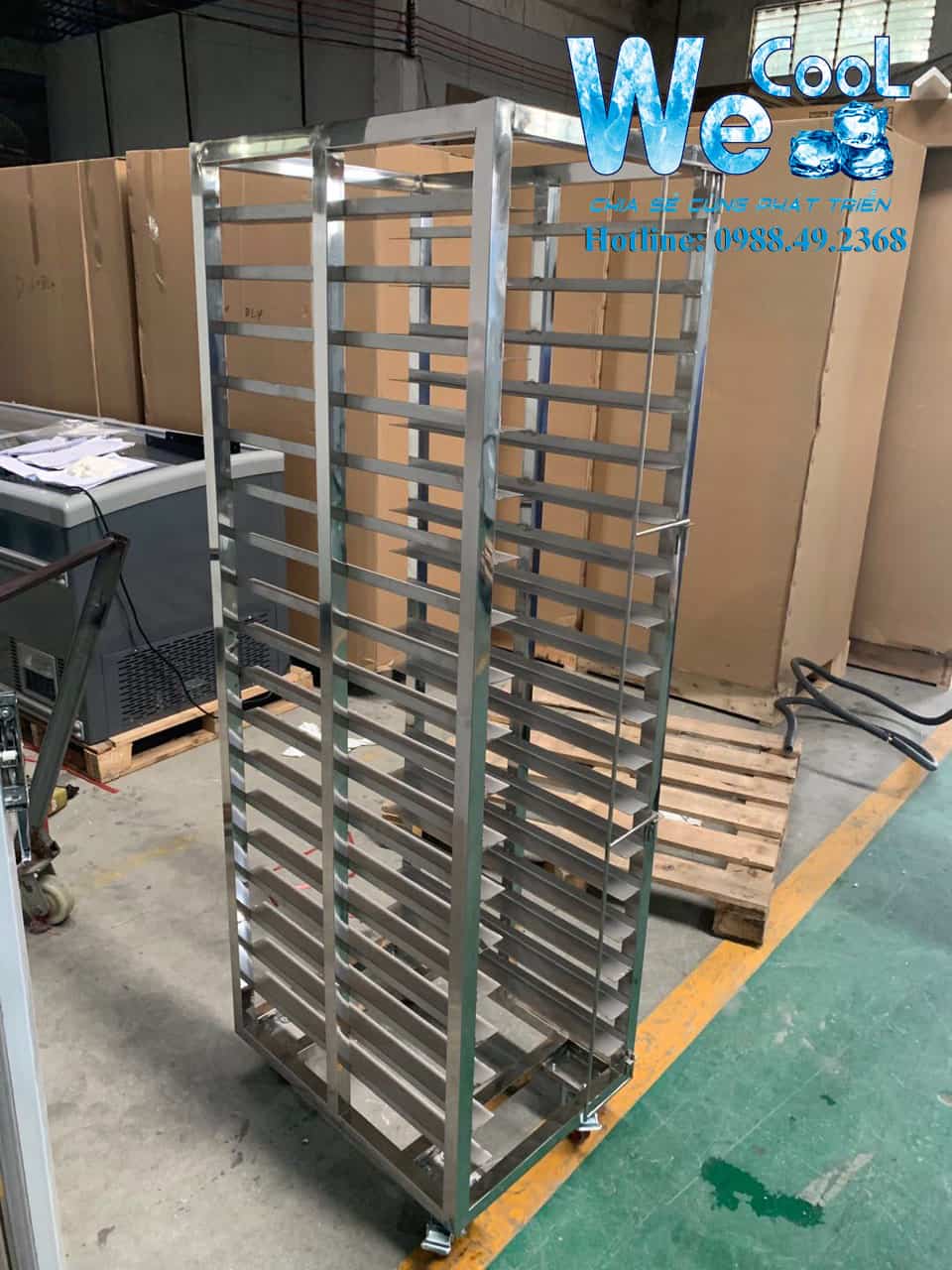 - Thiết kế xe đẩy khay tiện lợi cho việc đưa sản phẩm vào tủ cấp đông