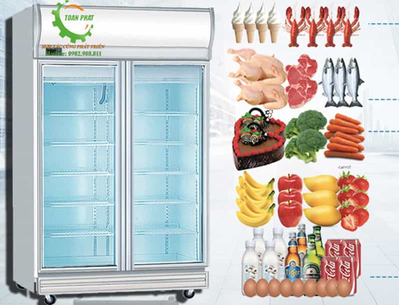 Tủ mát siêu thị được trang bị hệ thống đèn LED khắp thân tủ và trên nóc để nâng cao khả năng chiếu sáng cho trưng bày, giúp thực phẩm nhìn bắt mắt, màu sắc tươi ngon kích thích khách hàng hơn.